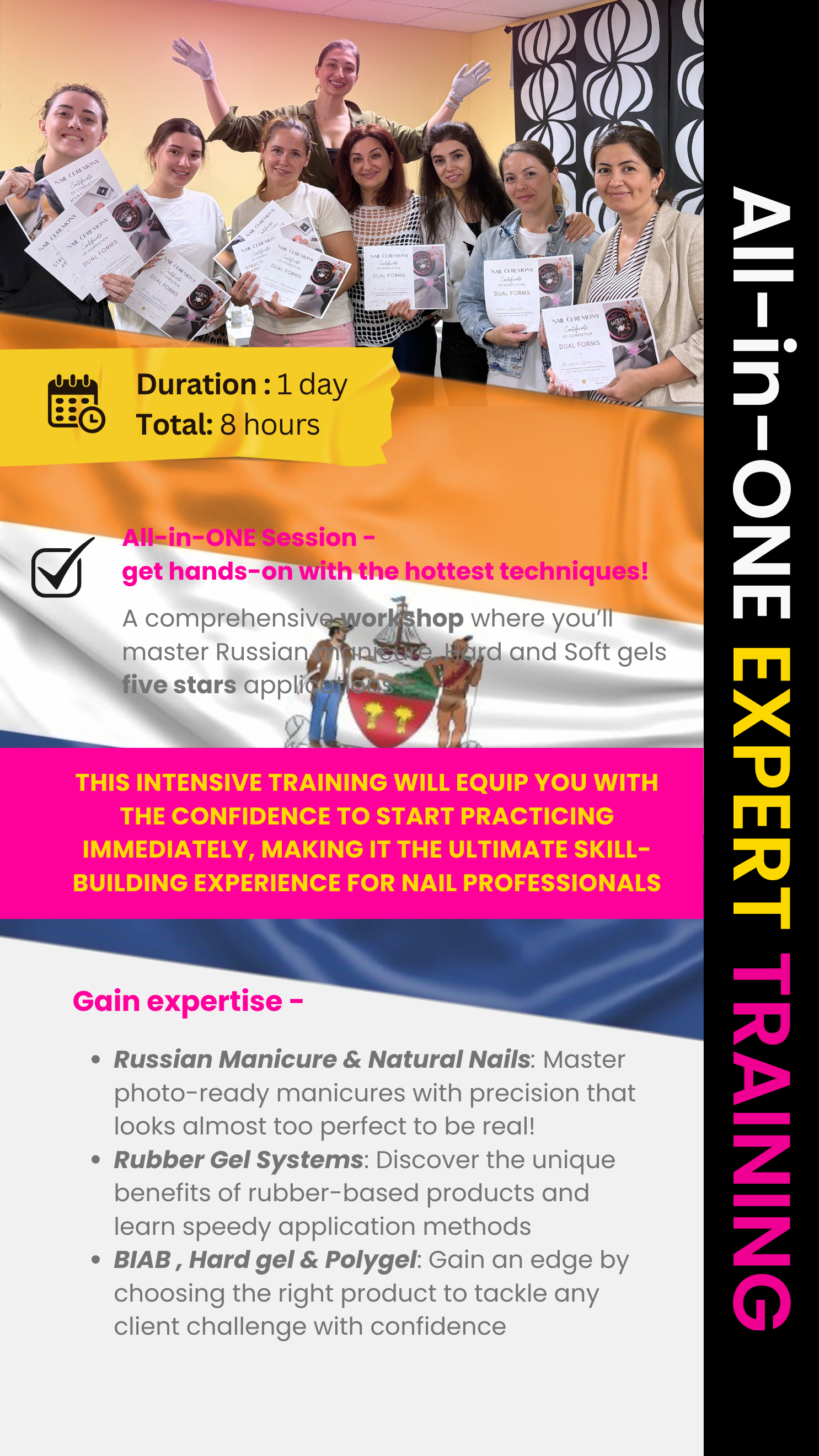 A comprehensive workshop where you’ll master Russian manicure, Hard, Soft & Poly gels applications!