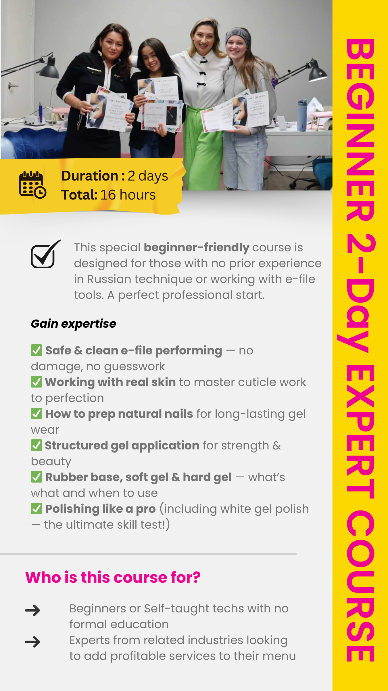✔️ Working on yourself! Yes — you’ll do your own Russian manicure on Day 1